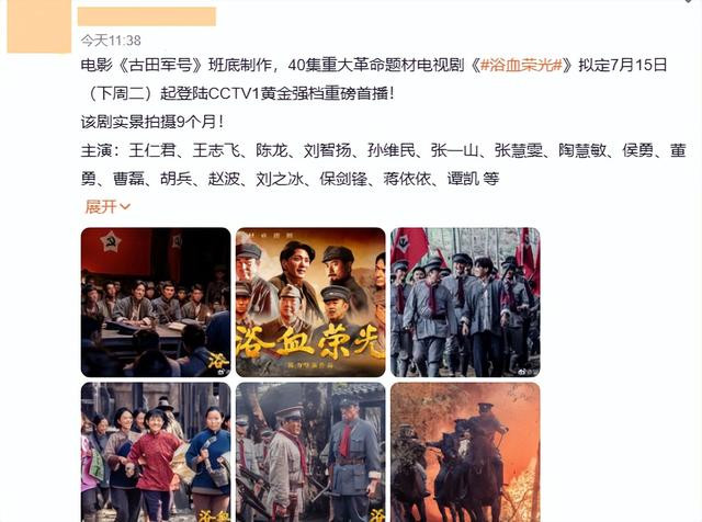 网传40集重大革命历史剧《浴血荣光》将于7月15日上星央视一套,看完所有物料后我想说:今年的年度最佳被预定了!