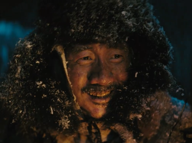 不过新剧中他扮演的彭德怀可没有一丝搞笑气质,身穿单薄的衣裳站在雪地中,目送着同志们离开,表情悲伤而哀痛,深沉的目光中满是不舍和难过。